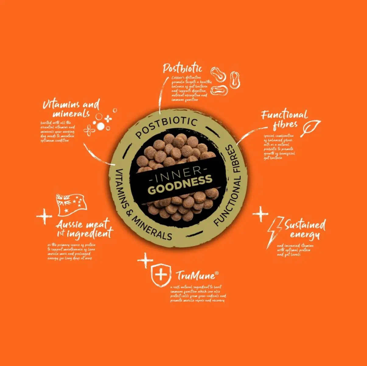 Rural and regional Australia’s favourite working dog food, Cobber Working Dog, is suitable for all adult working dogs including cattle dogs, kelpies and farm dogs with high energy requirements.
