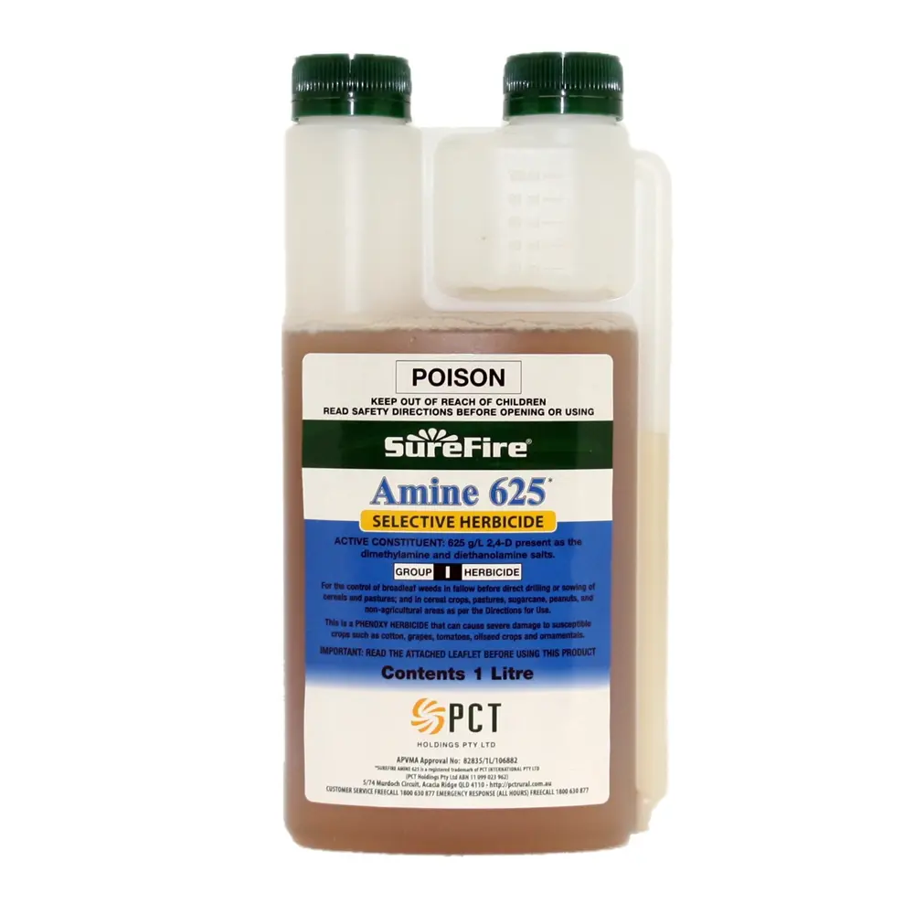 - Surefire Amine 625 Herbicide may also be used for knockdown control of broadleaf weeds before sowing cereals and pastures and in non-agricultural situations such as roadsides, rights-of-way, playing fields and industrial areas.